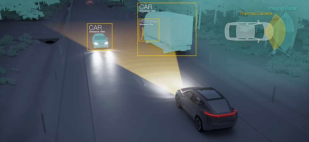 Comprehensive Radar portfolio including front and corner sensors with scalable performance from standard blind spot detection through high performance 4D imaging.