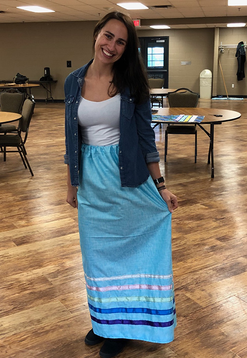 My most cherished possession is my ribbon skirt, symbolizing my womanhood and connection to Mother Earth. I made it myself in a traditional crafting class in Rama, where I also made my moccasins and jewelry. The class is appropriately called "The Art of Belonging."